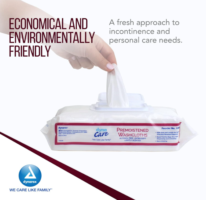 Dynarex DynaCare Premoistened Adult Washcloths, 8" x 12" Soft Pack Refill, 12pks/case (600 Count)