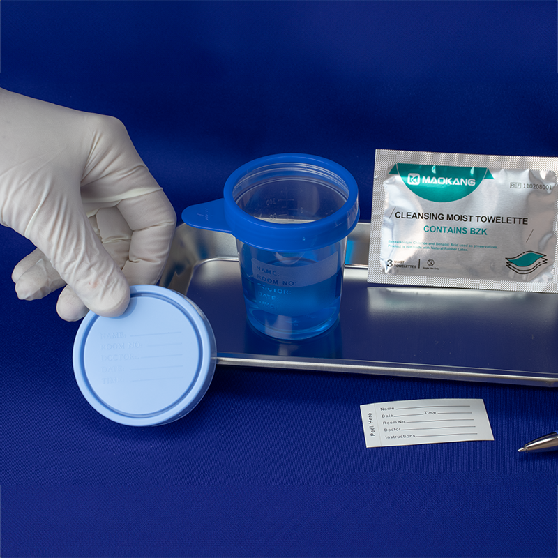 - Each kit contains: 1 Specimen Container-Cup; Specimen Container-Cap; Specimen Container-Collar; 3 BZK Towelette; Patient Label; Instructions for Use