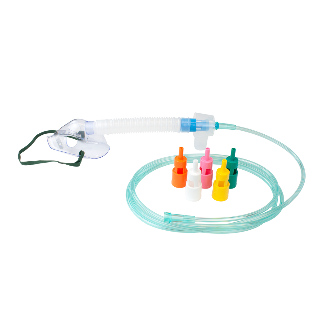 Dynarex Resp-O2 Venturi Masks are designed to deliver oxygen at fixed concentrations ranging from 24% to 50%. These masks come with light green oxygen supply tubing, designed to help improve tube visibility.