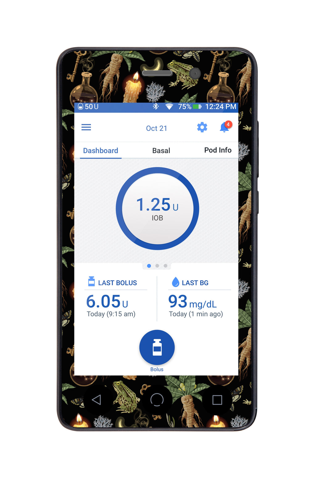 Add style to your Omnipod® DASH PDM with the Mandrakes Sticker for Omnipod DASH® PDM – Pump Peelz from Pump Peelz. This decorative vinyl sticker is precision-cut for a smooth fit, allowing you to personalize your Personal Diabetes Manager without affecting screen visibility or button access. Crafted from durable, easy-to-apply vinyl, each design lets you bring color and creativity to your daily routine. Omnipod® is a registered trademark of Insulet Corporation. Pump Peelz is not affiliated with or endorsed by Insulet. Device not included.