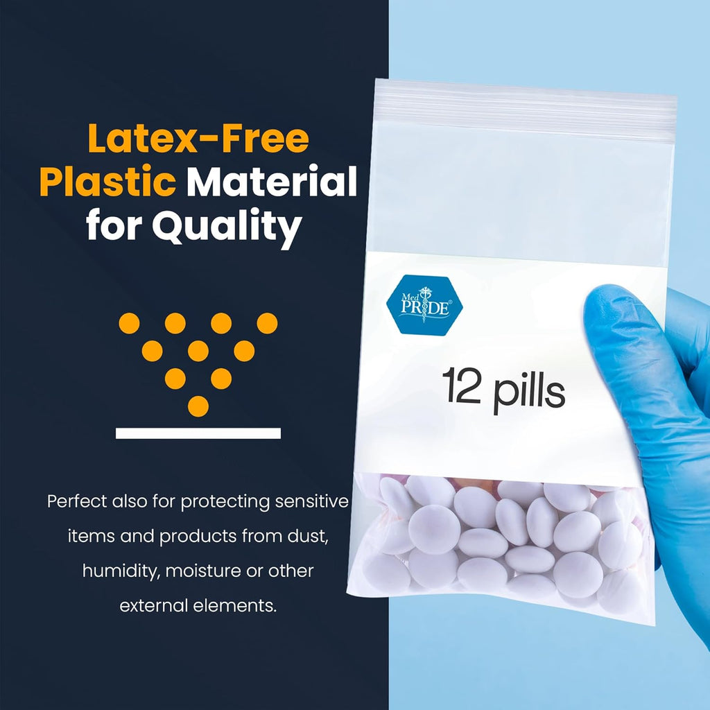 These reusable clear ziplock bags, size 10"x13" from MedPride are the perfect solution for safely storing a variety of items, including pills, medical supplies, jewelry, arts and crafts, pantry staples, office supplies, tech accessories, and travel essentials. Designed with a reclosable zip seal, they provide easy access while keeping your items secure and protected from dust, moisture, and spills.