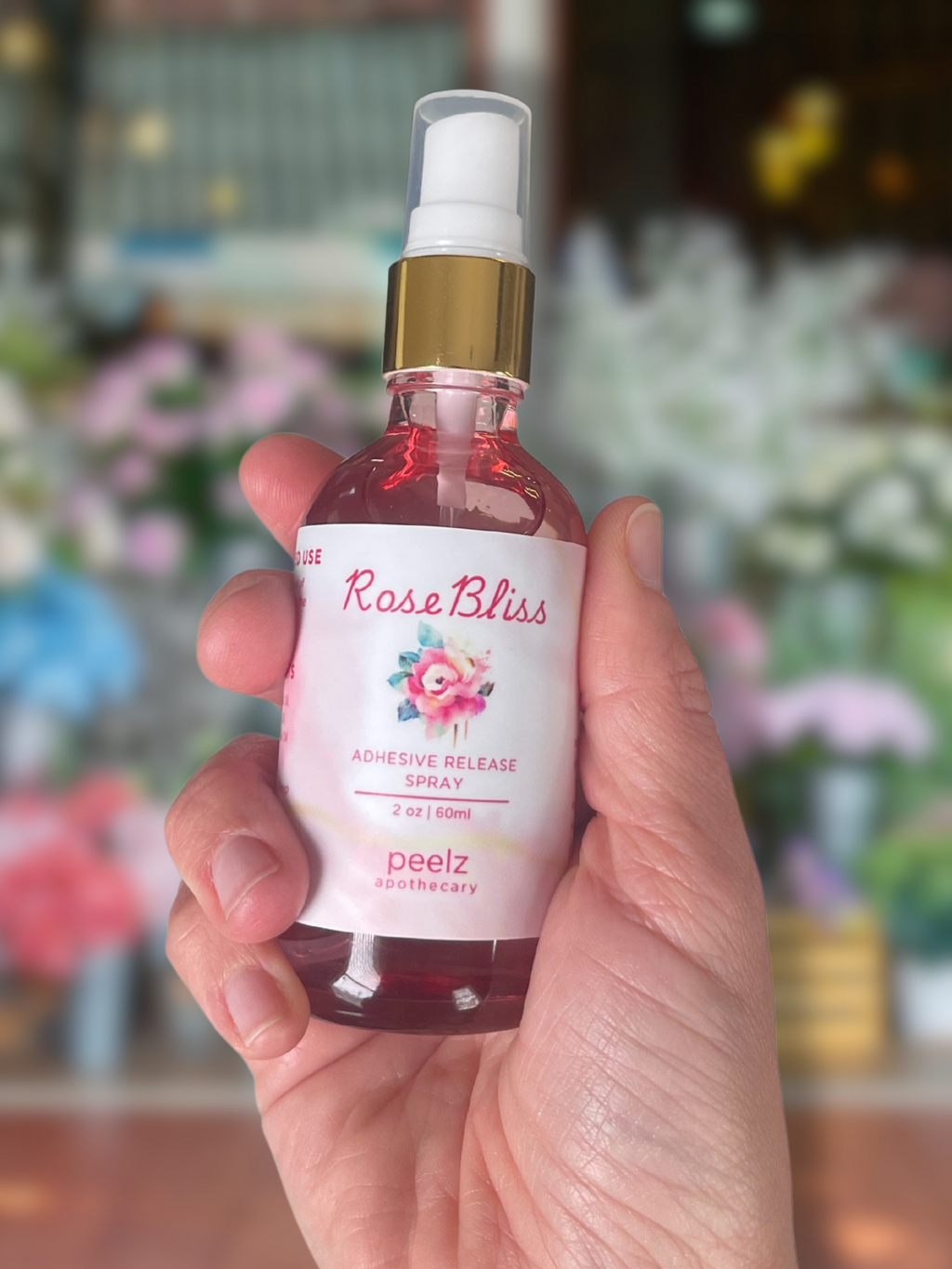 Elevate your skin care with the delicate and luxurious aroma of Peelz Apothecary's Rose Bliss Adhesive Release Spray. This non-toxic, alcohol-free formula combines rose and geranium essential oils to gently remove adhesive patches while nourishing and calming the skin. Indulge in the soothing scent of fresh roses as you care for your skin.
