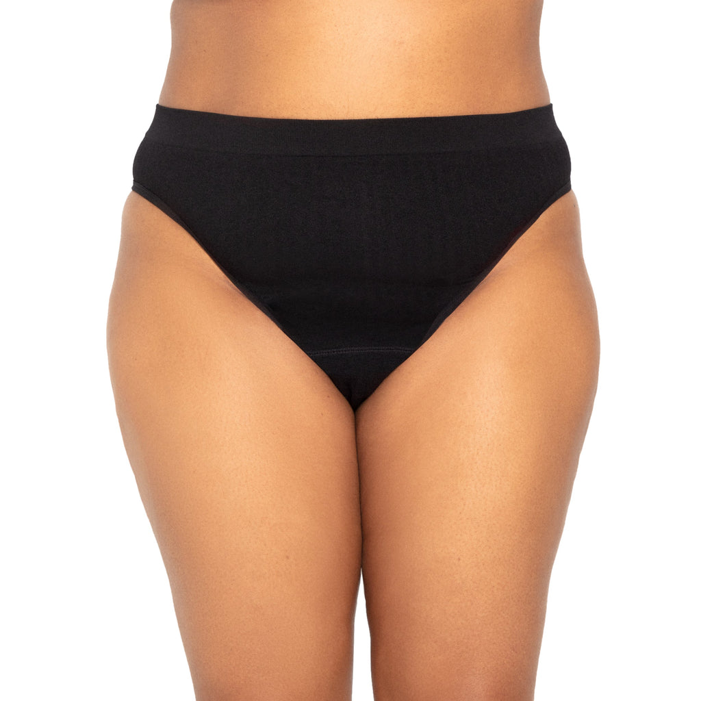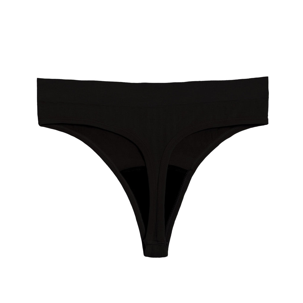 I’m the Sporty Stretch thong. I mean business. I’m a thong that can absorb period blood and I could do a triathlon. I’ve got the nice discreet feeling of a thong and the serious backup of being highly absorbent. Please play the Eye of The Tiger the first time you put me on. You’ll see. I’m made from our PeriodTech® fabric - a super stretchy and comfy Nylon and Spandex knit that moves with you. As always, the gusset is made with organic cotton.