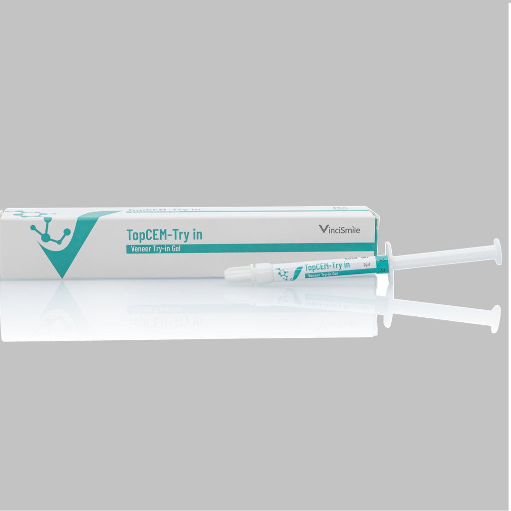 TopCEM-Try In Veneer Try-in Gel delivers accurate shade matching to TopCEM veneer cement.